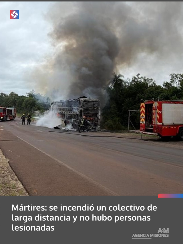 AGENCIA MISIONES.UNO | Un ómnibus fue consumido por un incendio este miércoles al mediodía sobre la Ruta Provincial N° 103, en cercanías del acceso a Mártires, sin que se registraran personas heridas.