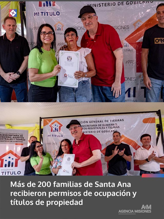 AGENCIA MISIONES.UNO | En la localidad de Santa Ana se realizó la entrega de 190 permisos de ocupación y 15 títulos de propiedad, una medida que permite a más de 200 familias avanzar en la regularización de sus terrenos y fortalecer la seguridad jurídica sobre sus viviendas.