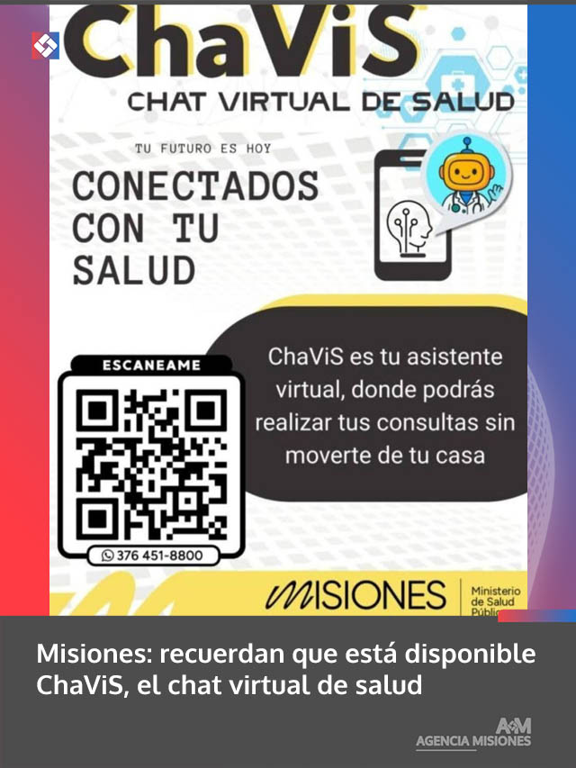 El Ministerio de Salud Pública de Misiones informó que continúa operativo ChaViS, el asistente virtual de salud diseñado para facilitar el acceso a información y orientación sin necesidad de trasladarse a un centro asistencial.