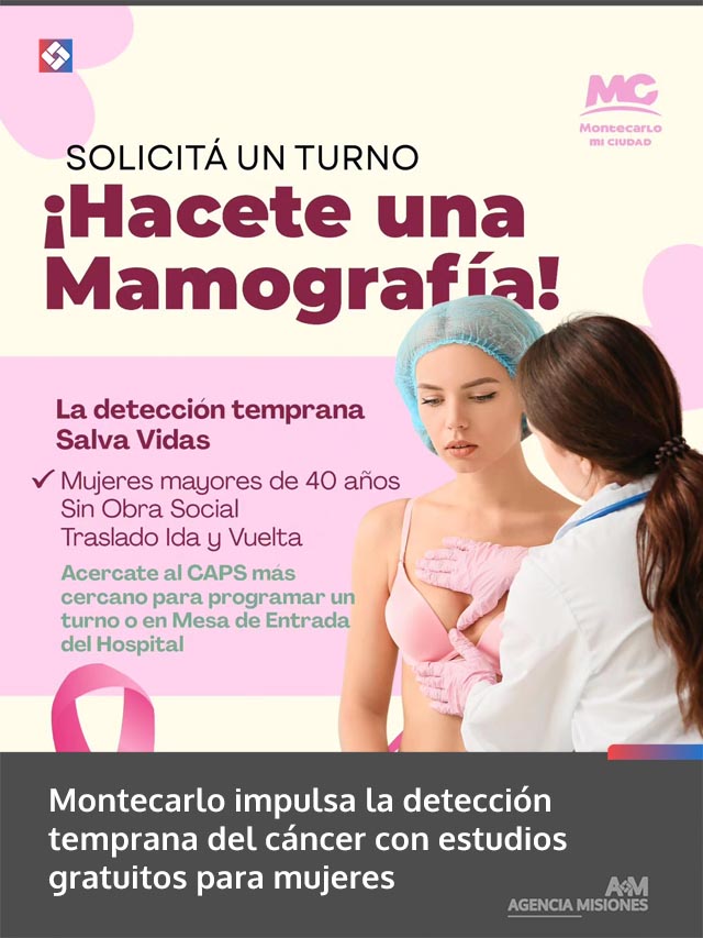 AGENCIA MISIONES.UNO | En Montecarlo invitan a las mujeres a realizarse estudios de mamografía y Papanicolaou (PAP), controles fundamentales para la detección temprana de enfermedades y el cuidado de la salud.
