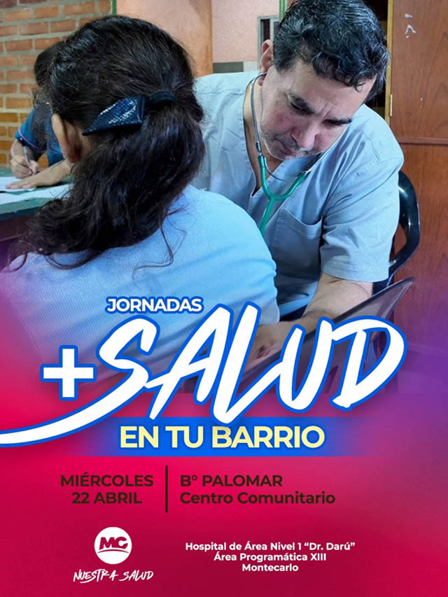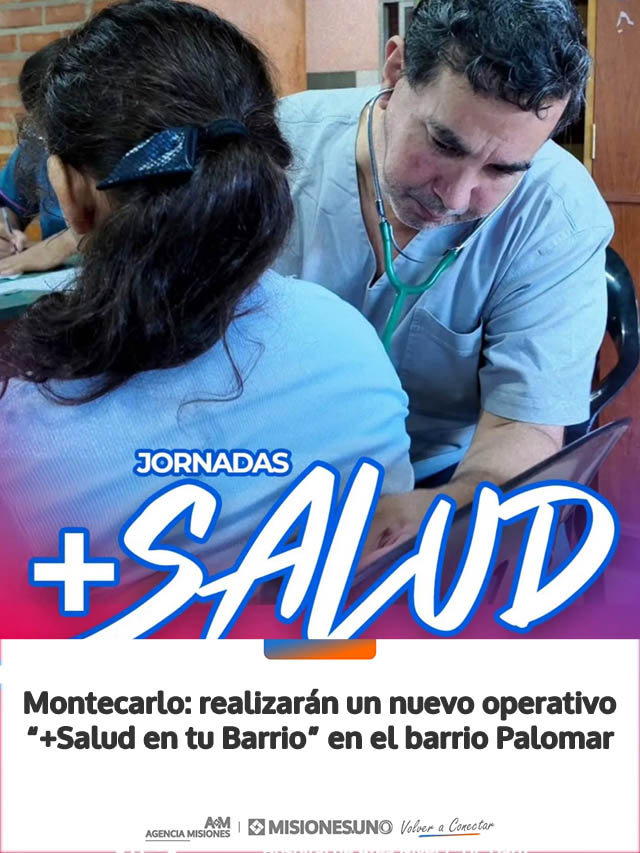 AGENCIA MISIONES.UNO | La Municipalidad de Montecarlo llevará adelante este miércoles 22 de abril una nueva jornada del programa “+Salud en tu Barrio”, con atención integral y gratuita para vecinos del barrio Palomar.