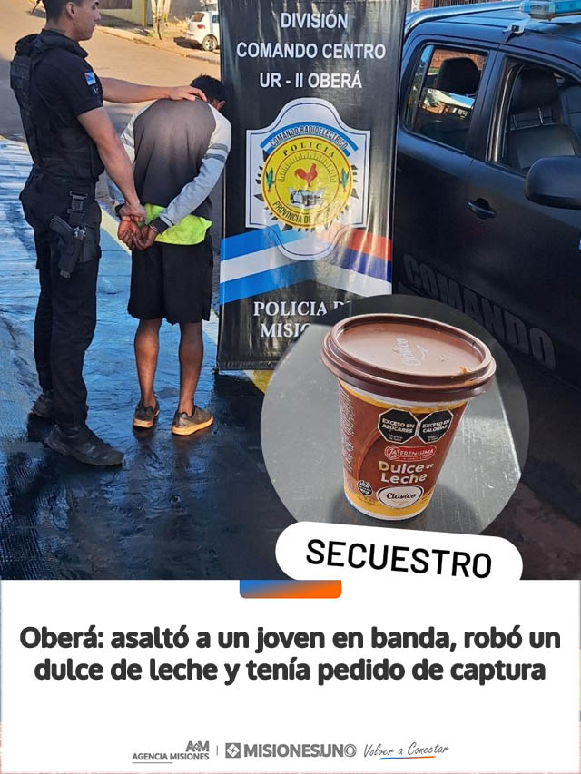Oberá: asaltó a un joven en banda, robó un dulce de leche y tenía pedido de captura