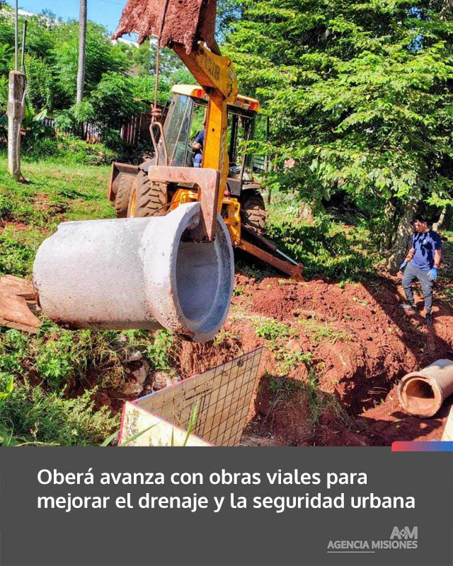 AGENCIA MISIONES.UNO | El Gobierno de la Ciudad de Oberá continúa desarrollando obras de cordón cuneta y desagües pluviales en distintos sectores, con el objetivo de optimizar el escurrimiento del agua y mejorar las condiciones de circulación.