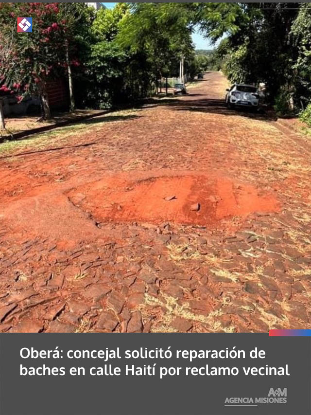 Oberá: concejal solicitó reparación de baches en calle Haití por reclamo vecinal