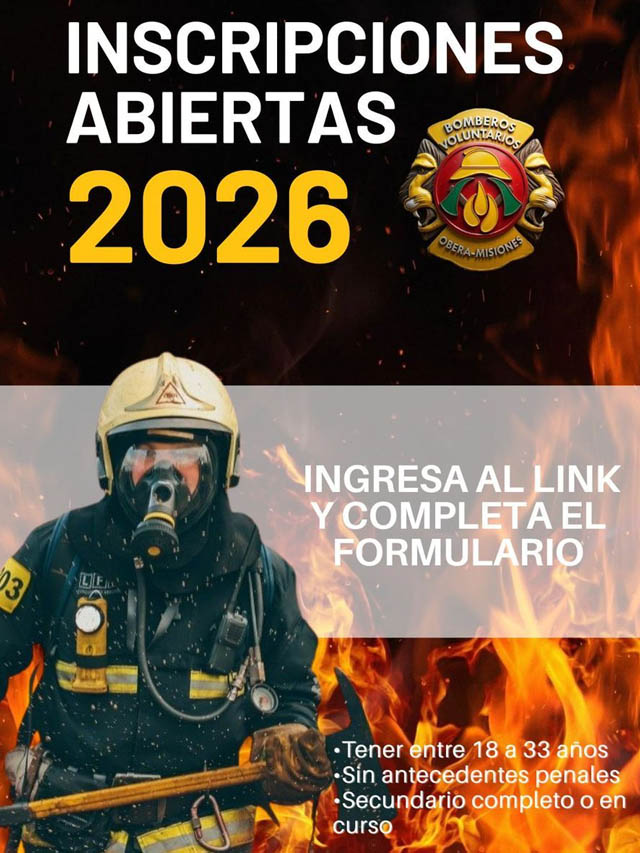 AGENCIA MISIONES.UNO | El Cuerpo de Bomberos Voluntarios de Oberá abrió la convocatoria para incorporar aspirantes de entre 18 y 33 años que deseen sumarse a la institución y formarse en tareas de emergencia y rescate.