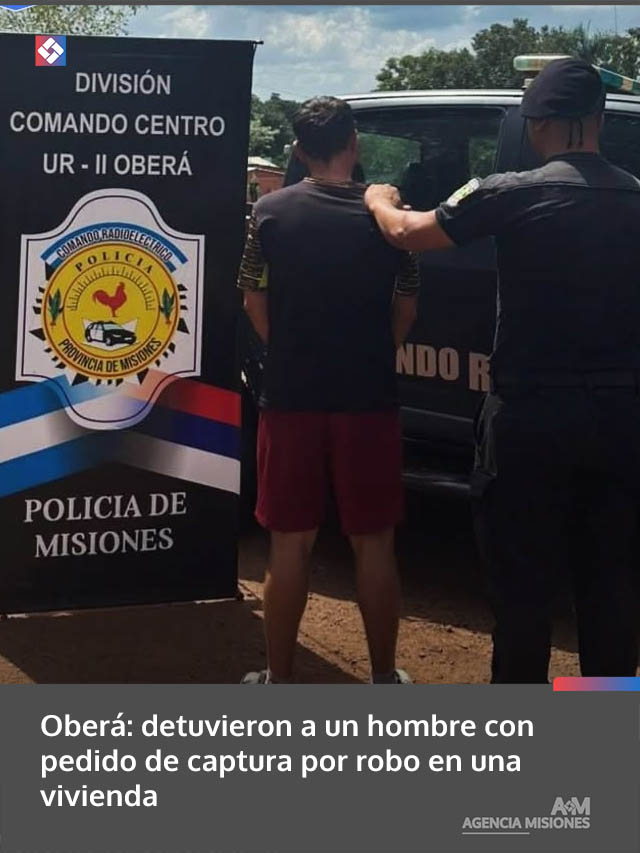 AGENCIA MISIONES.UNO | Efectivos de la Unidad Regional II de la Policía de Misiones detuvieron a un hombre de 29 años que registraba pedido de detención judicial tras ser sorprendido robando en una vivienda de Oberá, a la que ingresó armado con un cuchillo.