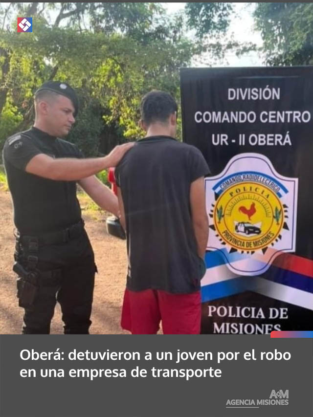 AGENCIA MISIONES.UNO | En el marco de una investigación por un robo ocurrido en una empresa de transporte de la ciudad de Oberá, efectivos del Comando Centro detuvieron a un joven de 23 años, señalado como el presunto autor del ilícito.