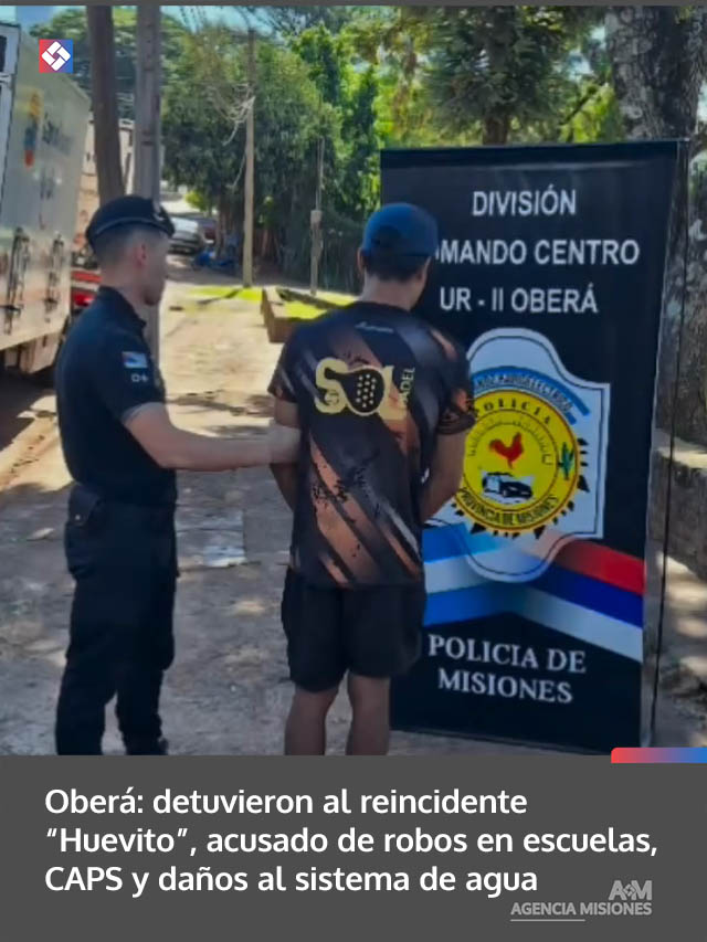 Un hombre de 25 años, conocido como “Huevito” y con múltiples antecedentes por delitos contra la propiedad, fue detenido en Oberá en el marco de una investigación por una seguidilla de robos que impactaron en instituciones públicas y servicios básicos.