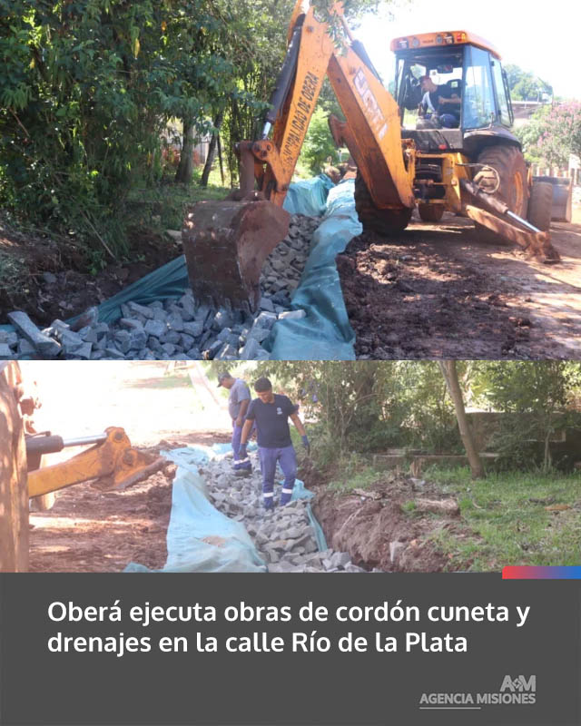 AGENCIA MISIONES.UNO | La Municipalidad de Oberá avanza con la construcción de cordón cuneta en el barrio Villa Cristen, sobre la calle Río de la Plata, con el objetivo de mejorar el escurrimiento del agua de lluvia y fortalecer la infraestructura vial de la zona.