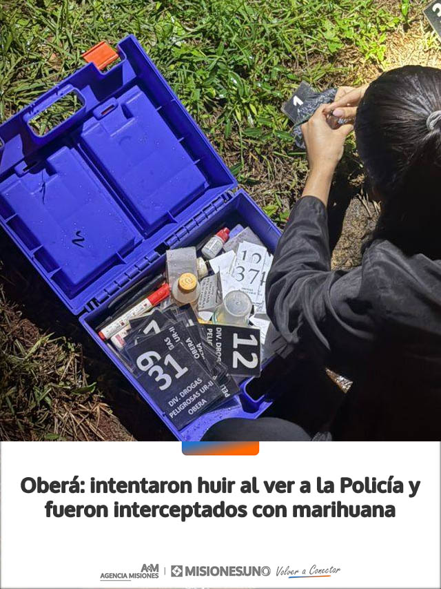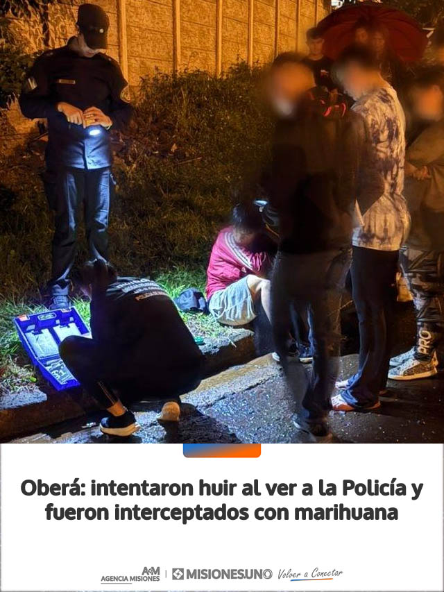 Un hombre de 24 años y un adolescente de 15 fueron interceptados en Oberá luego de intentar escapar de un control policial, en un procedimiento que culminó con el secuestro de marihuana y elementos relacionados a su consumo.