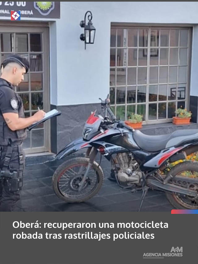 AGENCIA MISIONES.UNO | Efectivos del Comando Centro de la Policía de Misiones recuperaron una motocicleta que había sido sustraída en la ciudad de Oberá, luego de un amplio operativo de búsqueda realizado en distintos puntos de la zona urbana.