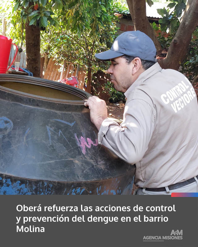 AGENCIA MISIONES.UNO | El Gobierno de la Ciudad de Oberá continúa desarrollando operativos de control y prevención del dengue y otras enfermedades transmitidas por mosquitos, con tareas focalizadas en el barrio Molina.
