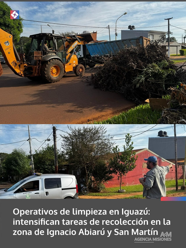 AGENCIA MISIONES.UNO | La Secretaría Municipal de Obras y Servicios Públicos de Puerto Iguazú llevó adelante este lunes trabajos de recolección de ramas, malezas y residuos acumulados en la vía pública en la intersección de las calles Ignacio Abiarú y San Martín, con el objetivo de mantener el orden y la salubridad en el espacio urbano.