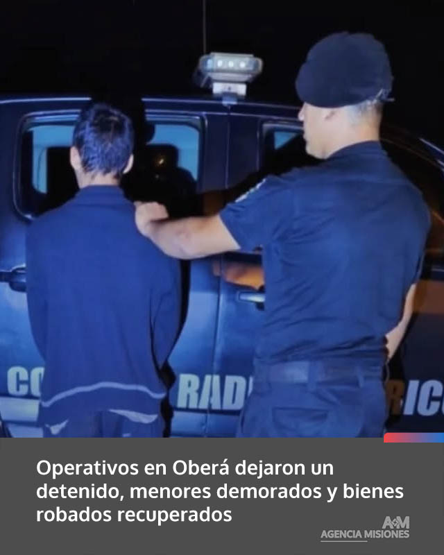 AGENCIA MISIONES.UNO | La Policía de Misiones desarrolló distintos procedimientos en la zona céntrica de Oberá que culminaron con la detención de un hombre, la demora de dos menores y el recupero de objetos sustraídos en varios hechos delictivos.