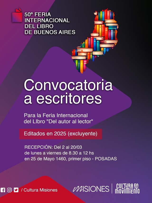 AGENCIA MISIONES.UNO | La Secretaría de Cultura de Misiones abrió la convocatoria destinada a autores misioneros, o residentes en la provincia, que hayan publicado libros durante 2025 con ISBN, para seleccionar diez obras que representarán a Misiones en la 50° Feria Internacional del Libro de Buenos Aires.
