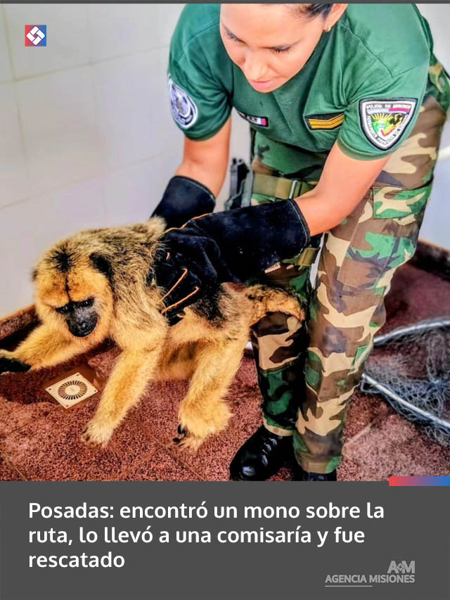 El hecho se registró el sábado alrededor de las 16:00, cuando un hombre de 34 años se presentó en la Comisaría 19na del barrio Itambé Guazú con un mono carayá que había encontrado sobre la Ruta Nacional 12, en cercanías de un parque de la ciudad.