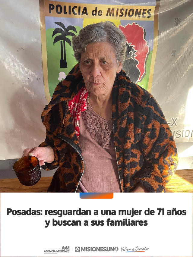 AGENCIA MISIONES.UNO | La Policía de Misiones asiste a una mujer hallada desorientada en la vía pública y solicita colaboración para identificarla y dar con sus familiares.