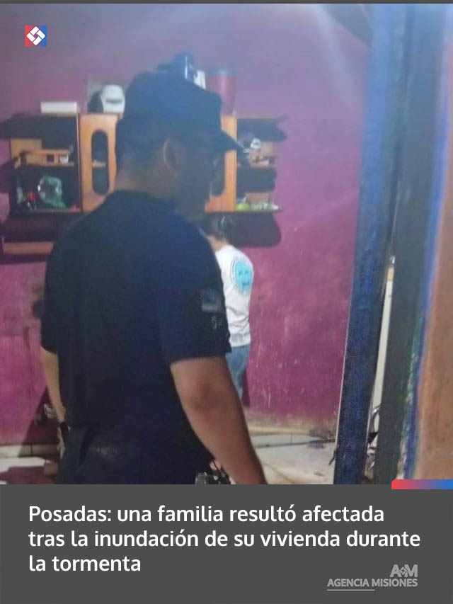 AGENCIA MISIONES.UNO | Una vivienda del barrio Chacra 82 de Posadas sufrió el ingreso de agua durante las intensas lluvias, lo que provocó daños materiales y la intervención de efectivos policiales y Bomberos para asistir a la familia.