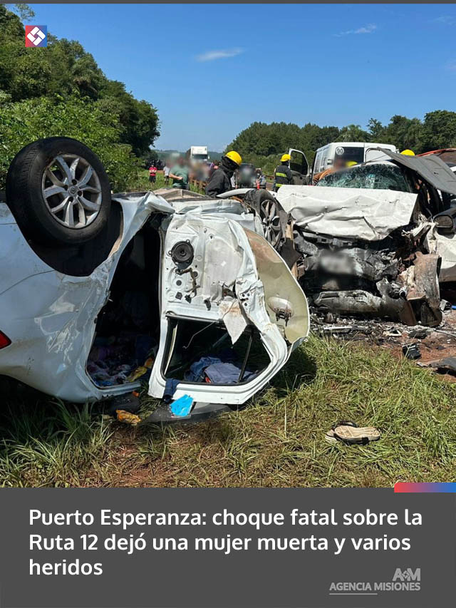 AGENCIA MISIONES.UNO | Un siniestro vial ocurrido este sábado por la mañana en Puerto Esperanza dejó como saldo una mujer fallecida y varias personas con lesiones de consideración. El hecho se registró sobre la Ruta Nacional 12, a la altura del kilómetro 1576.