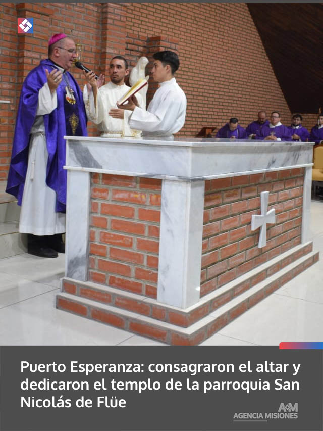El pasado 21 de marzo se llevó a cabo la consagración del altar y la dedicación del templo de la parroquia San Nicolás de Flüe, en la localidad de Puerto Esperanza, en una ceremonia que convocó a fieles de la comunidad.