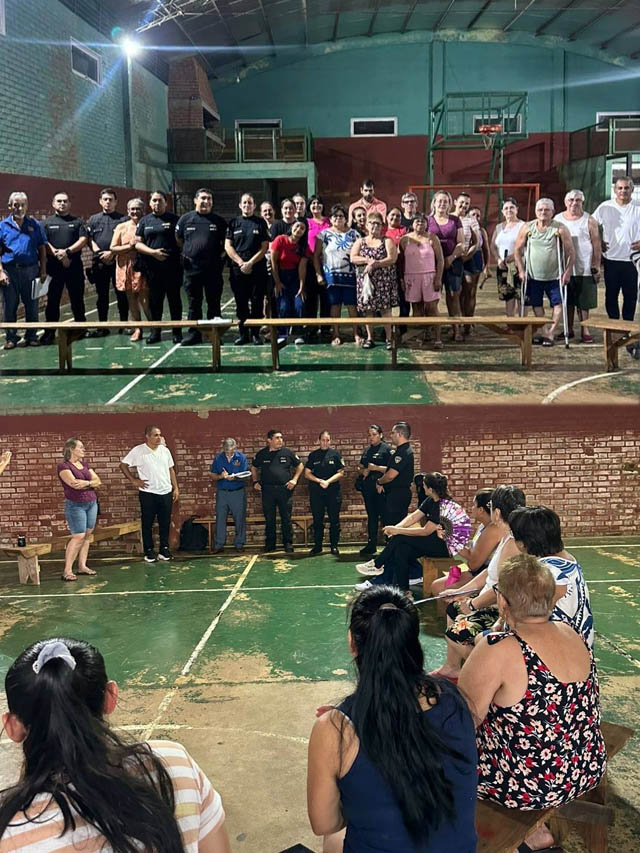 En la reunión estuvieron presentes el intendente Horacio Zarza, funcionarios municipales y autoridades policiales, entre ellas la jefa de la División Policía Comunitaria de Iguazú, junto a jefes de dependencias locales. Además, se destacó la participación de vecinos, quienes expusieron inquietudes, sugerencias y necesidades vinculadas a la seguridad en el barrio.
