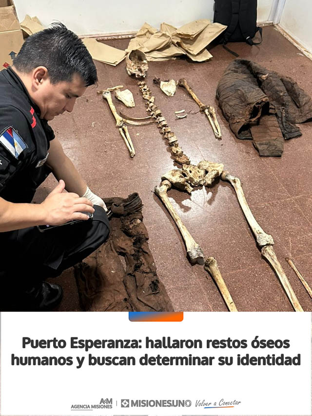 En la tarde del sábado, en la localidad de Puerto Esperanza, fueron encontrados restos óseos humanos en una zona de malezas conocida como “5 Arroyos”, ubicada a unos 500 metros de la Ruta Nacional N.º 12, a la altura del kilómetro 1576.
