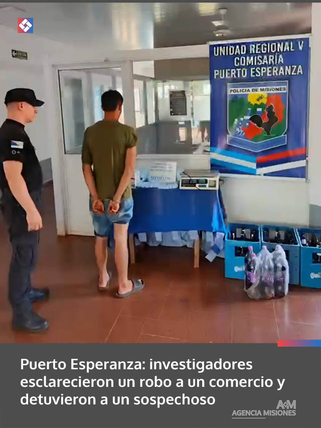 AGENCIA MISIONES.UNO | Efectivos de la Policía de Misiones lograron esclarecer un hecho de robo en un comercio de Puerto Esperanza, recuperando los elementos sustraídos y deteniendo a un hombre vinculado al ilícito.