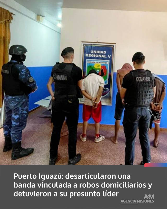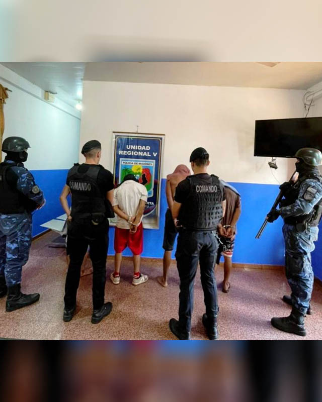Con los elementos reunidos, el análisis de registros fílmicos y una orden del Juzgado de Instrucción N.º 3 de Puerto Iguazú, equipos tácticos de la URV realizaron un procedimiento en el barrio Santa Rosa, donde se concretó la detención del sospechoso y de tres presuntos cómplices, cuyas edades oscilan entre los 25 y 35 años.