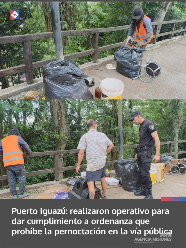 AGENCIA MISIONES.UNO | La Municipalidad de Puerto Iguazú llevó adelante un operativo sobre la avenida Victoria Aguirre para dar cumplimiento a la Ordenanza N° 34/25, que prohíbe la pernoctación en la vía pública.