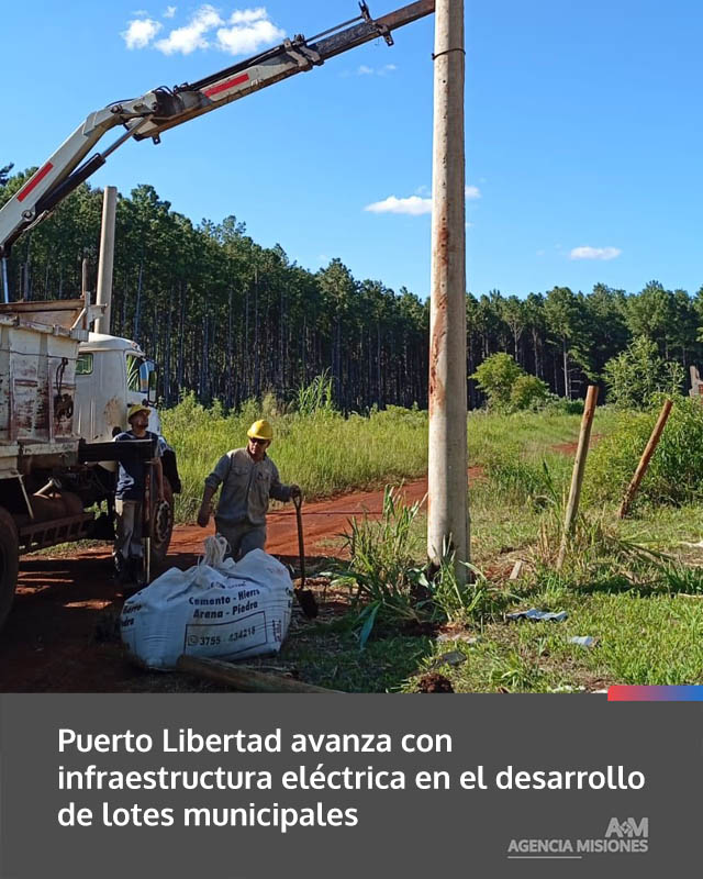 AGENCIA MISIONES.UNO | El Municipio de Puerto Libertad acompaña la colocación de postes para energía eléctrica en el marco del desarrollo de las 3.000 hectáreas destinadas a lotes municipales, a través de un trabajo conjunto con organismos provinciales y áreas locales.