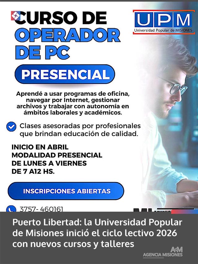 AGENCIA MISIONES.UNO | Desde la sede de la Universidad Popular de Misiones en Puerto Libertad se anunció el inicio del ciclo lectivo 2026, con la puesta en marcha de nuevas propuestas de formación destinadas a la comunidad.