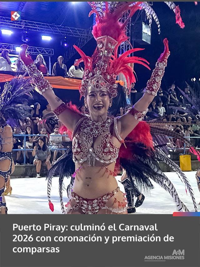 AGENCIA MISIONES.UNO | Puerto Piray vivió el cierre del Carnaval 2026 con una noche marcada por el brillo, la pasión y la alegría, en la que se realizó la coronación de los soberanos y la premiación de las comparsas destacadas.