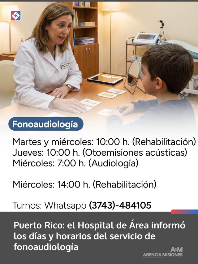 AGENCIA MISIONES.UNO | El Hospital de Área Puerto Rico dio a conocer los días y horarios de atención del servicio de fonoaudiología, orientado a la evaluación, diagnóstico y rehabilitación de la comunicación y la audición.