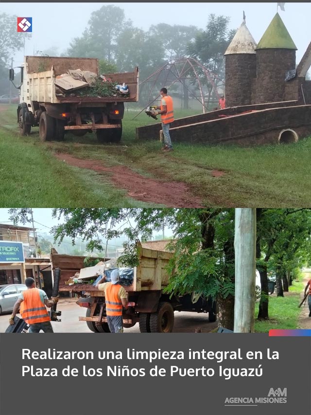 AGENCIA MISIONES.UNO | El equipo municipal de Puerto Iguazú llevó adelante un operativo de limpieza profunda en la Plaza de los Niños, con el objetivo de recuperar y mantener en condiciones adecuadas uno de los espacios recreativos más utilizados por las familias.