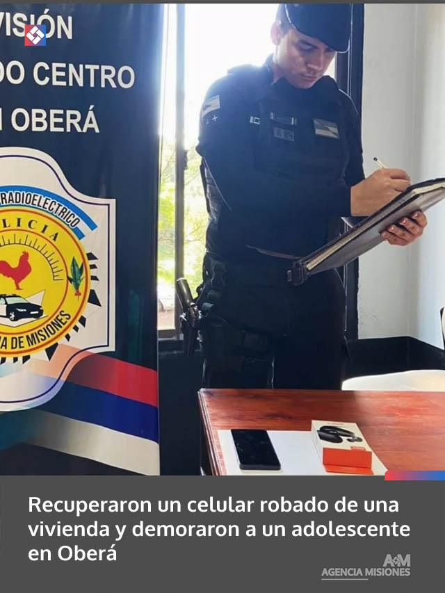 AGENCIA MISIONES.UNO | Efectivos policiales recuperaron un teléfono celular sustraído de una vivienda de la ciudad de Oberá y demoraron a un adolescente de 16 años, en el marco de un procedimiento realizado este viernes.