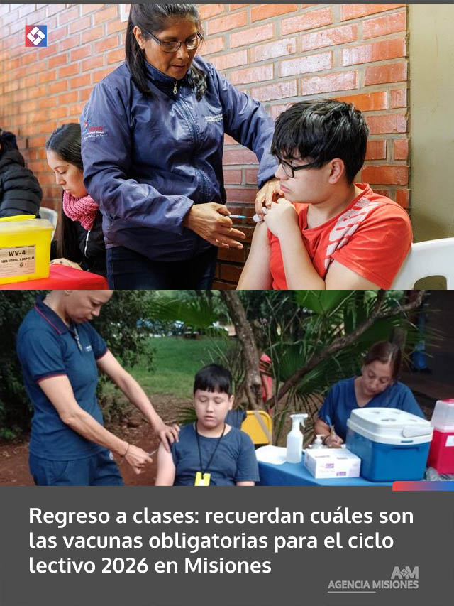 AGENCIA MISIONES.UNO | El Ministerio de Salud Pública de Misiones recordó las vacunas que deben tener niños, niñas y adolescentes antes del inicio del ciclo lectivo 2026, con el objetivo de garantizar la protección individual y comunitaria.