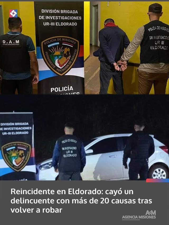 Un hombre de 33 años, intensamente buscado por una seguidilla de robos, fue detenido en Eldorado tras una extensa investigación llevada adelante por efectivos de la Unidad Regional III. El sospechoso había recuperado la libertad meses atrás y está vinculado a más de 20 causas por distintos delitos.