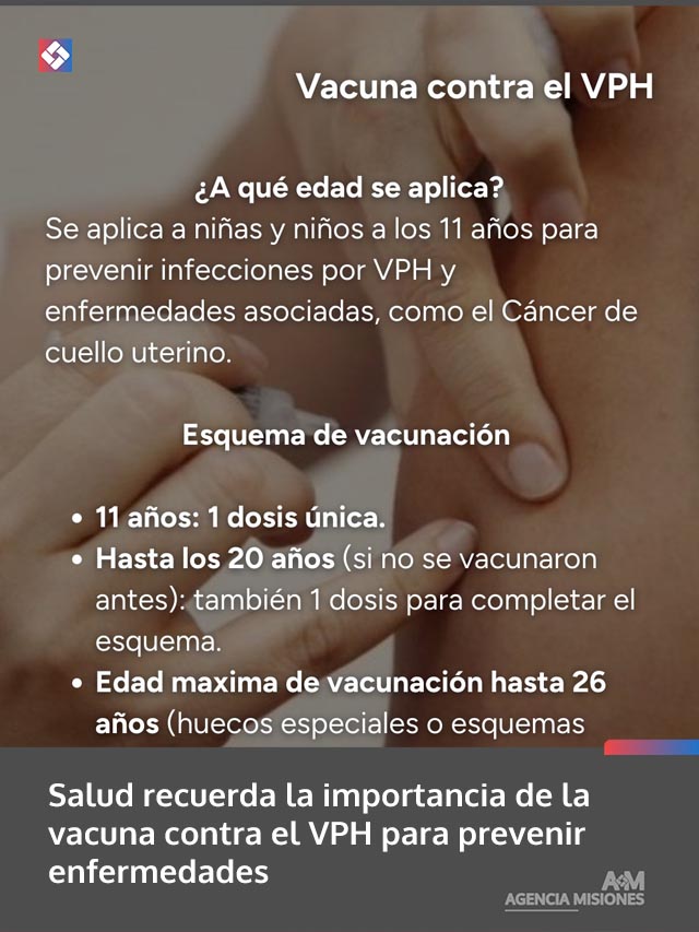 AGENCIA MISIONES.UNO | Autoridades sanitarias destacaron la importancia de la vacunación contra el Virus del Papiloma Humano (VPH), una herramienta fundamental para prevenir infecciones y enfermedades asociadas, entre ellas el cáncer de cuello uterino.