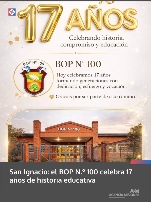 AGENCIA MISIONES.UNO | El BOP N.º 100 de San Ignacio conmemora este 30 de marzo su 17° aniversario, destacando su trayectoria en la formación educativa de la comunidad.