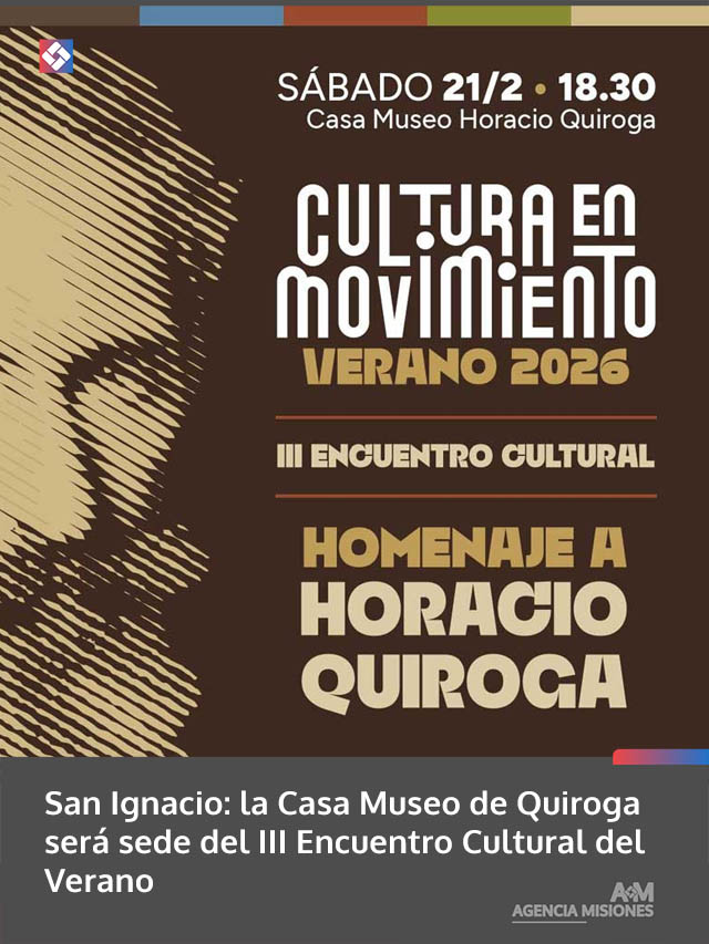 AGENCIA MISIONES.UNO | La Secretaría de Estado de Cultura y la Municipalidad de San Ignacio realizarán este sábado el III Encuentro Cultural del Verano con un homenaje a Horacio Quiroga, presentaciones de libros, entrega de premios y actividades artísticas para toda la familia.