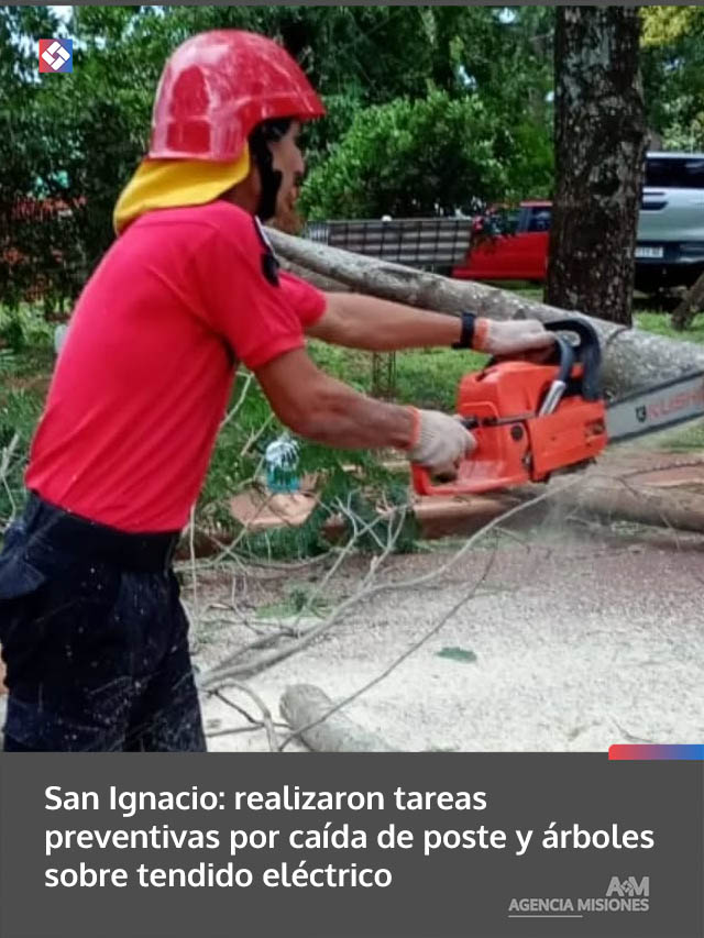 San Ignacio: realizaron tareas preventivas por caída de poste y árboles sobre tendido eléctrico