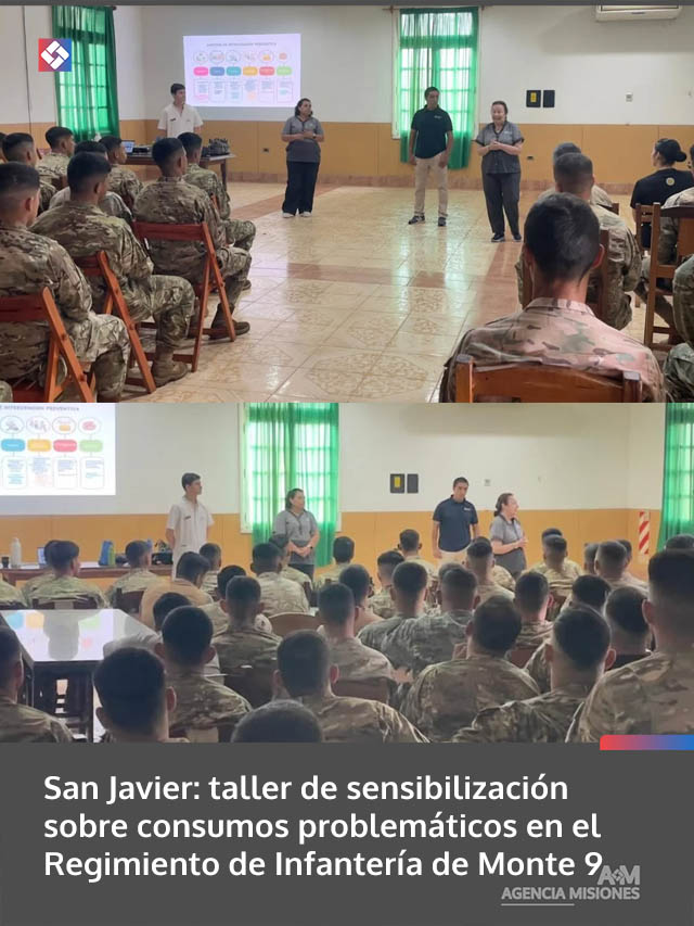 AGENCIA MISIONES.UNO | En el marco del programa Ámbitos Laborales Saludables, se desarrolló un taller de sensibilización sobre consumos problemáticos y adicciones destinado a integrantes del Regimiento de Infantería de Monte 9 del Ejército Argentino.