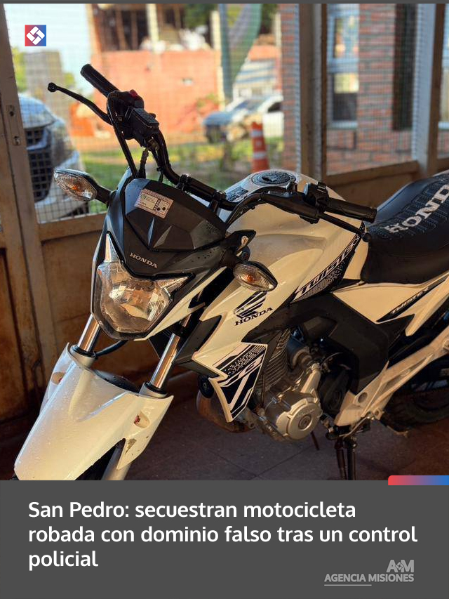 San Pedro: secuestran motocicleta robada con dominio falso tras un control policial