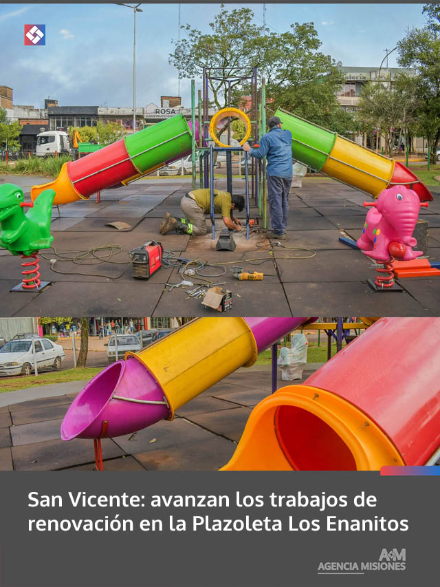 AGENCIA MISIONES.UNO | La Municipalidad de San Vicente lleva adelante tareas de renovación en la Plazoleta Los Enanitos, con el objetivo de mejorar las condiciones del espacio recreativo para las familias de la ciudad.