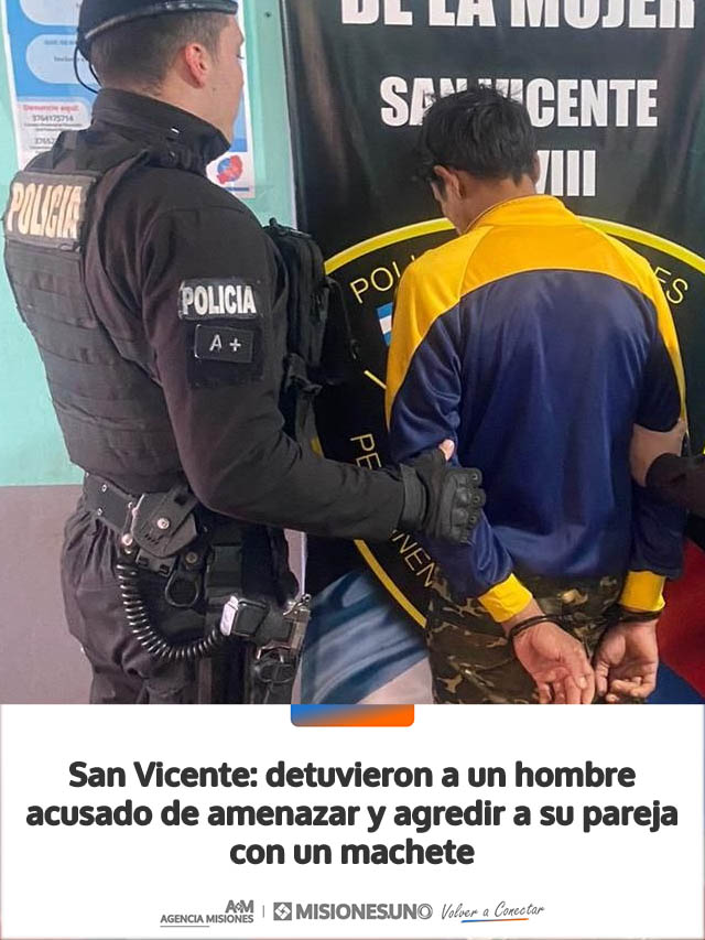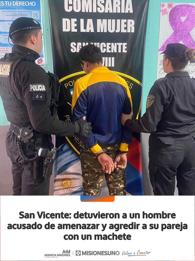 Un hombre fue detenido en la localidad de San Vicente luego de ser acusado de amenazar con un machete y agredir físicamente a su pareja en un hecho ocurrido en el paraje San Alfonso, en la zona de Fracrán.