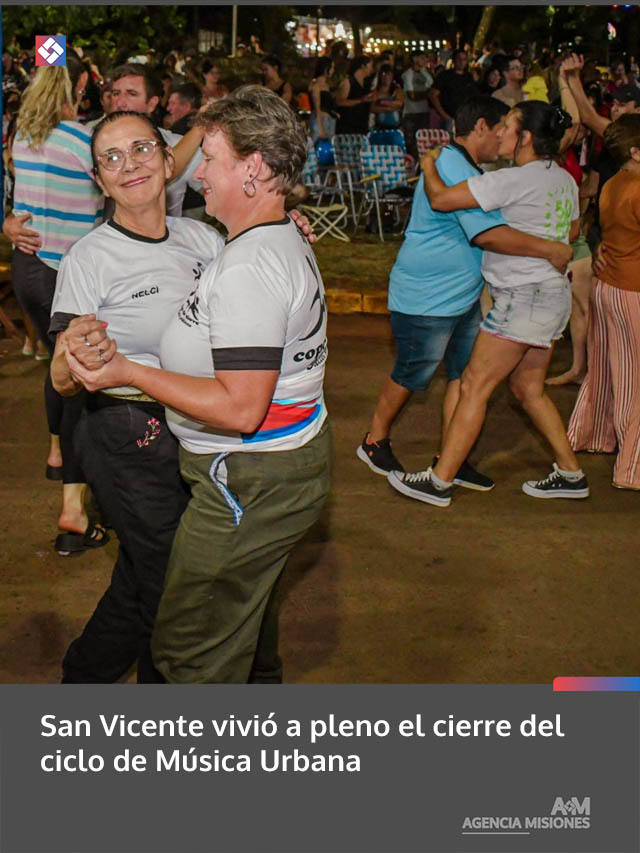 AGENCIA MISIONES.UNO | Con una gran convocatoria y un clima festivo, la ciudad de San Vicente celebró el cierre del ciclo de Música Urbana con una noche colmada de ritmo, baile y encuentro frente a la Casa de la Cultura.