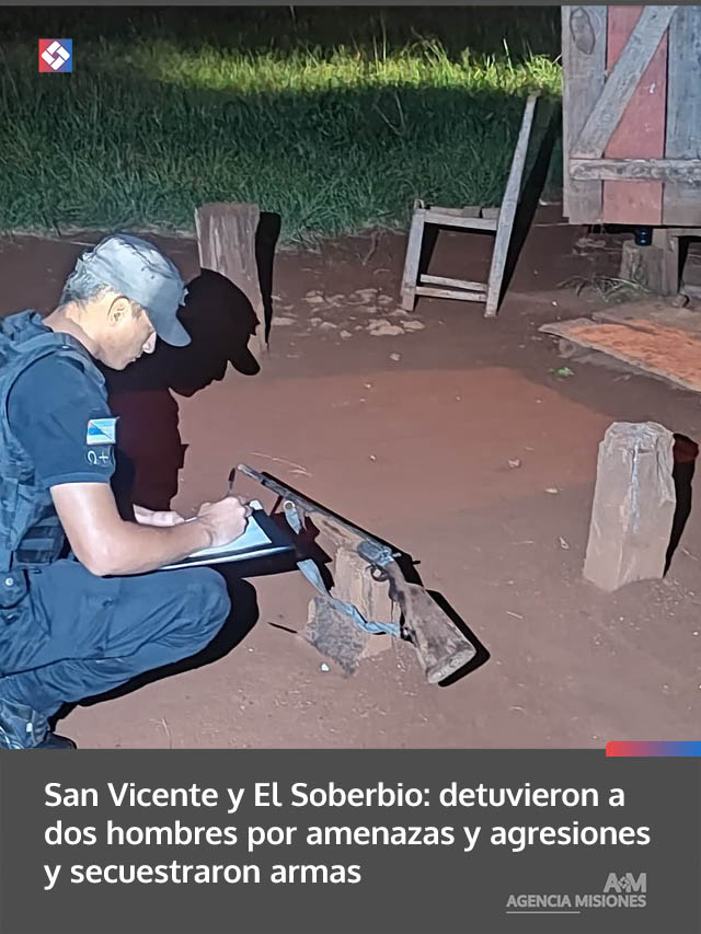 AGENCIA MISIONES.UNO | La Policía de Misiones intervino este martes en dos hechos de violencia registrados en El Soberbio y San Vicente, donde fueron aprehendidos los acusados y se secuestraron las armas utilizadas en cada caso.