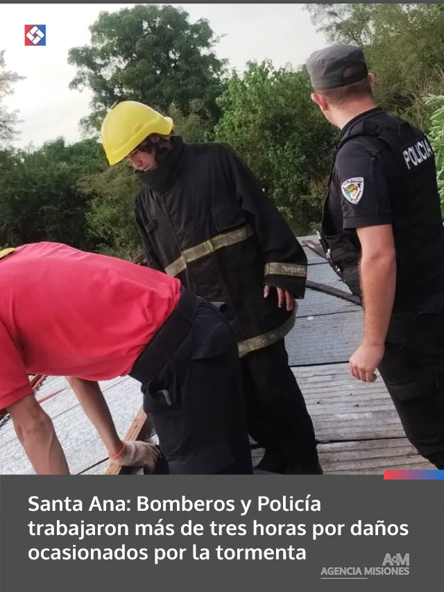 Efectivos de la División Bomberos trabajaron desde las 17:15 hasta las 21:00 horas con una dotación de tres integrantes, una autobomba SCAM AR-032 y una camioneta S10. Se registraron daños en cuatro viviendas con desprendimiento total y parcial de chapas.