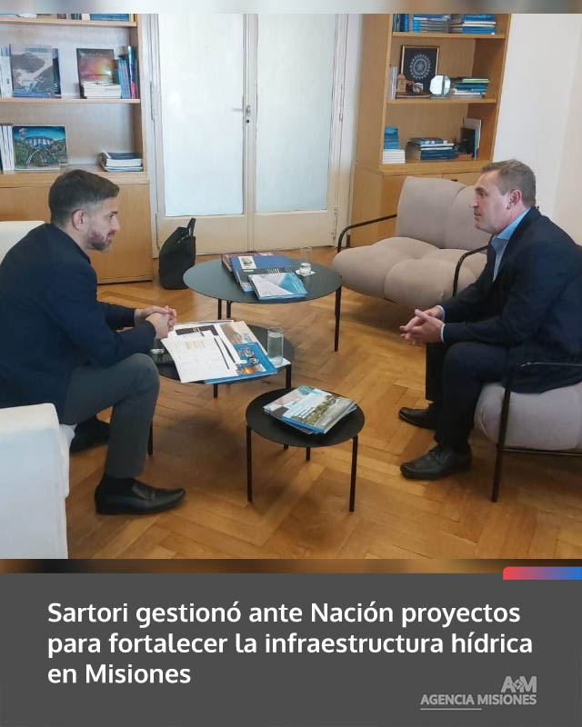 AGENCIA MISIONES.UNO | El ministro Coordinador de Gabinete, Carlos “Kako” Sartori, mantuvo una reunión de trabajo con el subsecretario nacional de Recursos Hídricos, Bartolomé Heredia, para avanzar en iniciativas destinadas a mejorar la infraestructura hídrica en la provincia de Misiones.