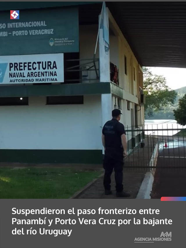 El paso fronterizo entre Panambí, en Misiones, y Porto Vera Cruz, en Brasil, fue suspendido desde este lunes como consecuencia de la bajante del río Uruguay, que presenta niveles que dificultan la navegación.